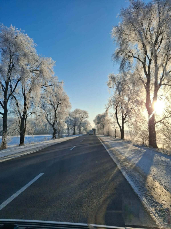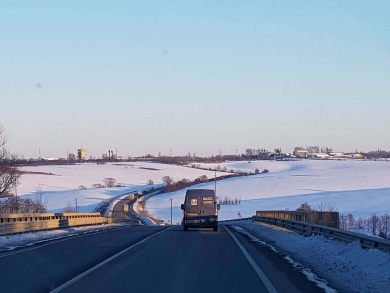 Le 9 février, le convoi à destination de Zaporijjia a traversé la frontière ukrainienne et roulé jusqu'à la ville d'Ouman, sous un ciel bleu, mais par des températures glaciales (jusqu'à -26 °C).