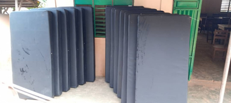 Le bénéfice de l'exposition "Gestes de femmes" (prêtée par l'association Yovo-Mewi) et du concert de l'ensemble Chabada nous a permis de financer l'achat de treize matelas pour le Centre d'Accueil Le Bon Samaritain à Natintingou.